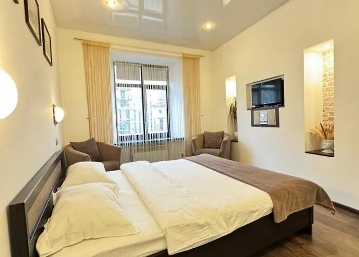 Apartment Mitskevycha Square 5 ferielejlighed ligger i Prospekt Svobody område i Lviv, 10 km fra Lviv Danylo Halytskyi Internationale lufthavn. Stedet består af 1 soveværelser og 1 badeværelser.